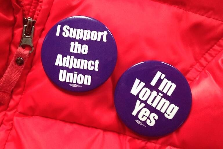 Hoi’s emphasis on the inclusion of adjuncts in the broader academic community is a reflection of union demands that part-timers be treated as professionals, Smith adds, and has been a consistent theme of adjunct organizing throughout the country. Locally, the demand is a feature of an ongoing organizing campaign at nearby Goucher College, where part-time faculty are awaiting a National Labor Relations Board decision on the outcome of a closely contested union election there in late 2014.